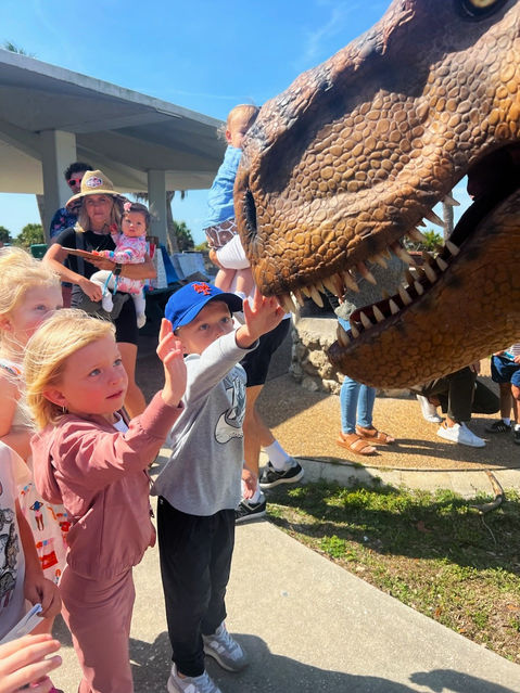 Let Rex, our Tyrannosaurus Rex, or Blue, our Deinonychus Raptor, or baby Sandy our Stygimoloch beguile everyone at your next gathering! Our human handlers will be on the scene to keep everyone safe and happy!